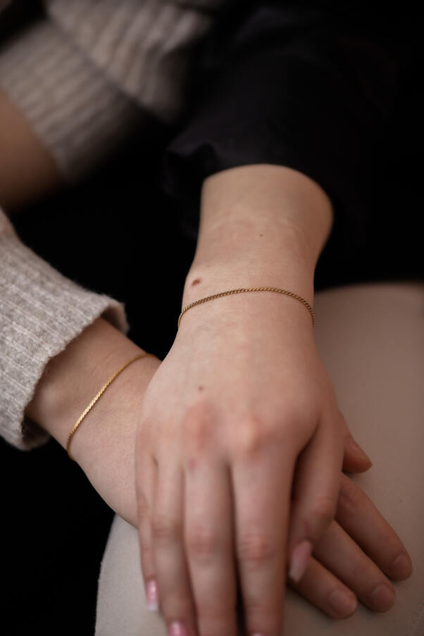 Jetzt ist dein Geschmack gefragt. Such dir aus unseren Ketten in den Farben Gold, Silber oder Roségold deinen Favoriten aus. Alle Kettenmodelle sind im Einheitspreis enthalten. Wenn du deinem Permanent Bracelet eine persönliche Note verleihen möchtest, kannst du zusätzlich aus wunderschönen Charms und Anhängern wählen. Lass dir ruhig Zeit für dein perfektes Armband. Wir beraten dich gerne bei der Auswahl.